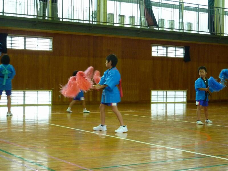 自分の動きが分かったところで、体育館に移動し実際に舞ってみました。すると、今度は自分たちが動く場所がしっかりと分かり、スムーズにいきました。次からは「腕をまっすぐ、腰を下ろして」を意識しながら練習していく計画です。