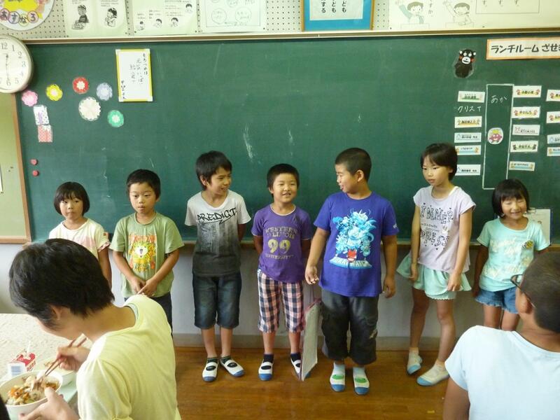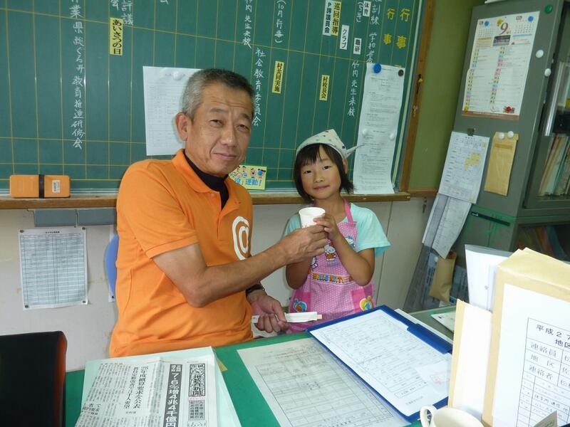 給食時間に食べて欲しいと1~4年生が全校児童分と職員分を作ってくれたのです。給食のおかずが一品増えて喜ぶ子どもたち。「いただきます」の後、1~4年生がこの料理の説明をしてくれました。