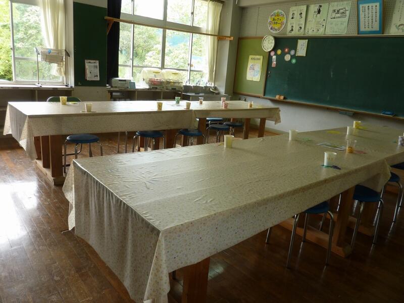 給食の時間になり、ランチルームに行くとテーブルの上には何かがセッティングしてありました。