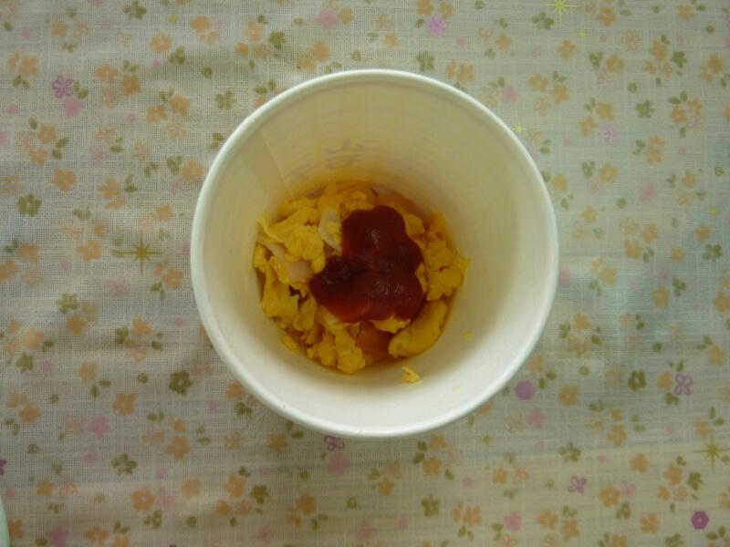 「トマトが1個はいっちょった~」とか「味付けはケチャップだけよ」、「卵を溶いて、その中にチーズを入れたよ」等と楽しく話しながら、おいしい「トマトグラノーラ」を食べていました。