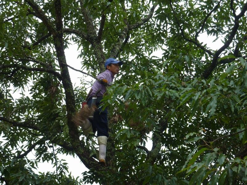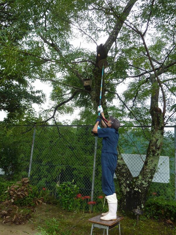 【はしごや椅子を使ったり、木に登って切ってくださったりしました】