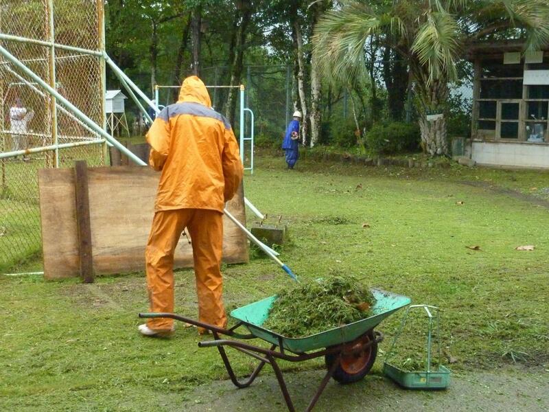 昨日は、PTAの奉仕作業の日でした。15時開始でしたが、14時30分くらいから担当地区の方々がお越しくださり、早くから作業をしていただきました。今回は、草刈りや木の剪定でした。運動場の端の方に短い草が生えていたので、ていねいに刈ってくださいました。また、先の台風の影響により木の枝が折れているところがありました。木が折れて落ちてくると危ないですので、そこも枝を切り取っていただきました。