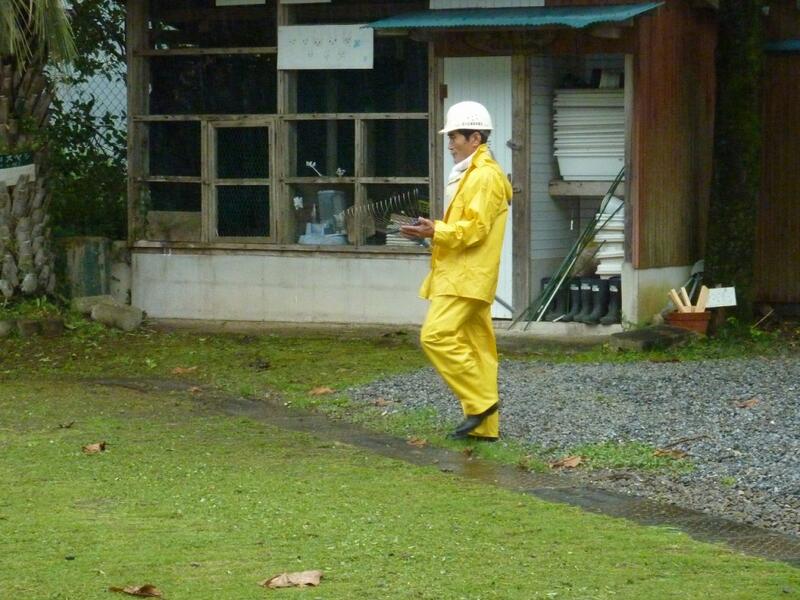 途中、雨がポツポツと落ちてきました。そして、あっというまにザーザーと降り始めました。すると、地域の方々は軒下に移動され、カッパに着替えられました。そしてすぐに雨の運動場に出て草刈りをしてくださいました。そんな地域の方々のかっこいい姿、子どもたちも図書室から見ていたと思います。(昨日はもろっこクラブでした)また、荒谷小への愛情をひしひし感じました。