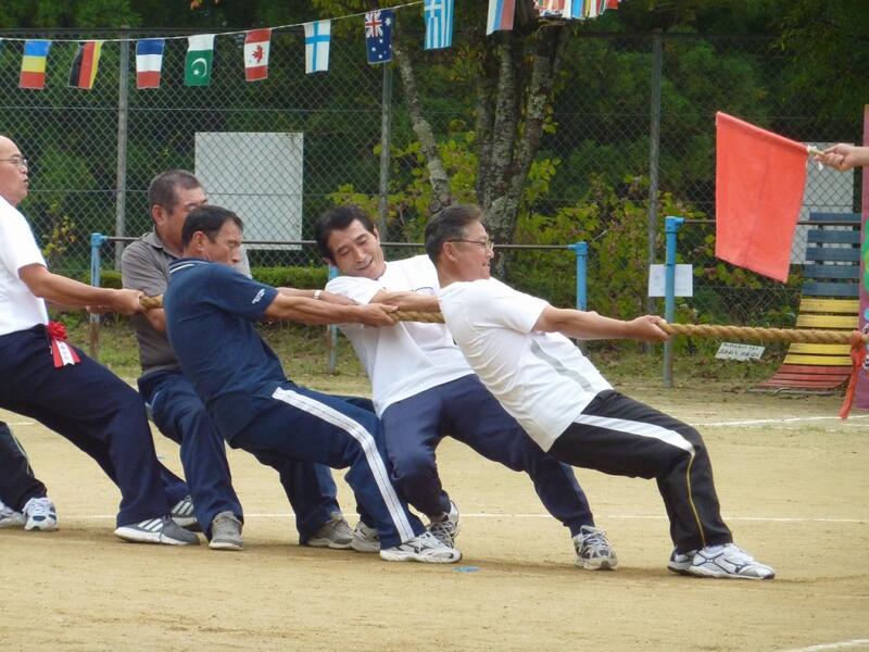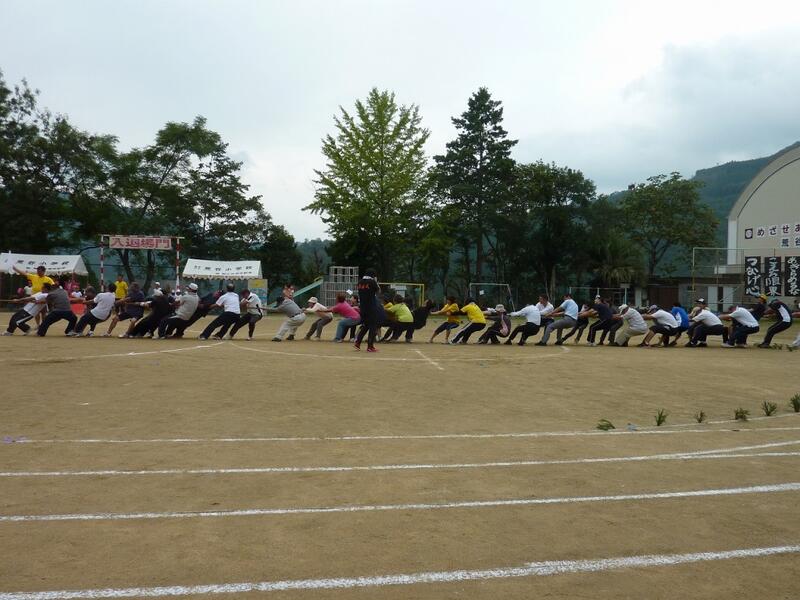 その後も、地域の方々が参加されるプログラムがありました。青年の方々が参加される競技では、ユーモア溢れるパフォーマンスが織り交ぜられ、至るところで笑い声が聞こえてきました。運動会の後、聞いたお話では「子どもたちはこの青年のパフォーマンスを見て、いつかは僕たち・私たちもあんなことをしてみたいと思っているとよ。今の青年たちも、私たちがしていたのを見ていた世代やからね」と伺いました。脈々と受け継がれるこれらの競技、いつかは子どもたちも、次世代の子どもたちのために一肌脱ぐ時が来るのでしょうね。