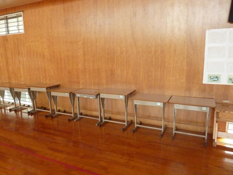 【はちまきが乾いたらアイロンをあてます】【3・4年生はM学習のために机も出してくれました】