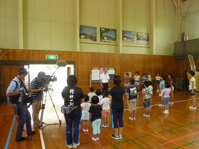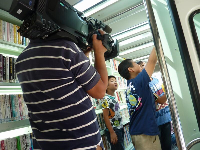9月25日(金)に、やまびこ号が荒谷小にやって来ました。しかし、今日はいつもと違って、テレビカメラやアナウンサーの方も来ています。実は、このやまびこ号で子どもたちが本と触れ合っているところを取材にきてくださったのです。いつもと同じようにはじめの会をしましたが、どこか緊張気味の子どもたち。今までにない雰囲気のはじめの会となりました。