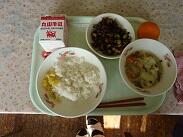 学校に戻り、給食の時間になると台の上に大きな炊飯器が登場しました。実は3・4年生が、朝お米を研いでいてくれておいもを収穫した直後にごはんと一緒に炊いておいもごはんを作ってくれていたのです。なんと1升炊いたそうです。給食もあるので、ほくほくしたおいもを給食のごはんの上に乗せておいもを味わいました。新鮮であま~いおいもに食欲もそそられ、あっという間においもを食べてしまっていました。給食を全部食べた児童には、おいもごはんのおにぎりのおかわりがありました。残ったおにぎりはみんなでお家に持って帰ります。