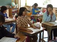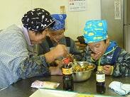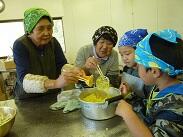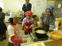 「上品に言うと『しいたけ』うちへんは『なば』って言うと」と笑いながら話してくださったり、「学校の放送はうちの家まで聞こえてくるよ~」と話してくださったりして、楽しい和やかな時間を過ごすことができました。また、子どもたちが料理をしている間、静かに洗い物をしてくださっている加工グループの方もいらっしゃいました。料理を通して、昔のお話や料理の知恵を聞いたり、戸下加工グループの方々の温かさを感じたりすることができたと思います。