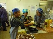今日は1・2年生が先日収穫したサツマイモやしいたけを戸下の集会所に持って行き、戸下加工グループのみなさんと調理をしました。今日は、おいもスティック、茶巾しぼり、さつまいもの天ぷら、しいたけ南蛮を作り、その他にも簡単しいたけ料理を披露していただきました。