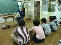 【乾燥しいたけの置き場が少し変わった1・2年生の教室で読み聞かせ】