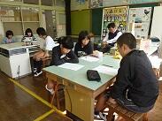 6校時、職員室に入るといつもとは違う雰囲気を感じました。そこには、3年生がローマ字表を片手に、パソコンの前に座って何かを一生懸命うっている姿がありました。近づいて見ると、ノートに下書きしたメッセージをメールで送るためにパソコンに向かっているようでした。「読点ってどうやって書くんですか?」と聞いたり、教頭先生が打ち方を教えてくださったり、時に頭を抱えたりして、5行の文章をおよそ20分かけて打っていました。大変な作業だったと思います。このメールをもらう方がうらやましく感じられるくらい一生懸命で新鮮な姿でした。
