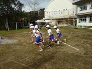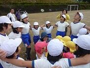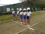 長距離走大会では、これまで自分たちが出してきた記録の更新にむけて保育所生と小学生が円陣を組み、かけ声をかけて始まりました。