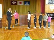 3年生は読書を頑張った児童の発表です。2学期までに100冊を目指して取り組んでいたけれど、現在までに92冊というあと少しのところまできています。冊数は到達できませんでしたが、選ぶ本の種類が変わってきたようで5・6年生が読むような本にも挑戦しているそうです。そして「本がもっと好きになりました」と発表していました。もう一人は「あきらめない心」が身に付いた児童です。運動会や長距離走大会で苦しいときもあきらめずに頑張ったことから、強い心が育ったと自覚していました。