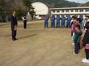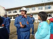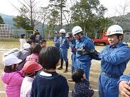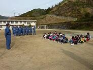 その後、この日のためにお集まりいただいた諸塚村消防団第4部の方のお話がありました。この第4部消防団、先日の出初め式では各部門での優勝、そして総合優勝をしている素晴らしい方々です。子どもたちの中には、「第4部ってすごいんですよ。諸塚で優勝してるし、日向でもかなう相手はいないんですよ」と誇らしげに語っていた子どももいました。