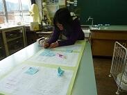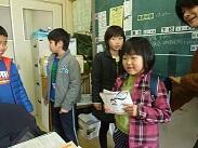 その他の児童は、農林振興局や観光協会に行ってお話を聞いたり、12月に行われたツアーのお礼に行ったりしました。また、学校で作業をする子どもたちは、メッセージツリーの製作をしたり、CMのデータを発送する準備をしました。CMの発送では、定形外の封筒を使用し、CDを入れたり文書をたくさん入れたりするので、切手が普段見る切手と違うようで「(100円切手や10円切手を見て)こんな切手があるんですか?」と驚いていました。