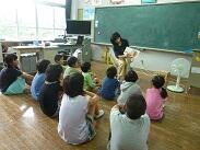 その後、畜産振興部門、資源開発部門、茶業振興部門のお話がありました。その中の、資源開発部門では、子どもたちにもなじみのある「もろっこはうす」の紹介がありました。村内の椎茸は宮崎県内に留まらず、関東・関西・中国・四国地方等と取引があること、更に、干し椎茸をイタリアのミラノでPRしたことや、アメリカ・デンマーク・シンガポールにも輸出していること等を聞き、子どもたちの目はキラキラしていました。また、乾燥キクラゲの需要が高まってきていること等も知り、村内で生産されるものの価値に気付いた子どもたちでした。