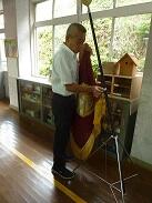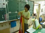その頃職員室では、運動会で使用した校旗・優勝旗を干す作業が進められていました。