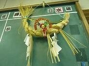 クリスマスが終わり、荒谷小でもお正月の準備が整いつつあります。12月23日に教頭先生が寿会の方々と一緒に作ったしめ縄は、学校の玄関に飾ります。
