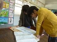およそ20分間作文を書いたら、再度他者評価をしました。「あとがきの前に調べた内容をもうちょっと入れるともっと分かりやすくなるんじゃない?」とか「取材の雰囲気が伝わる表現があるので、僕でも納得しました。」等と、自分の思ったことをしっかり相手に伝えていました。