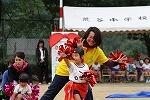 午前中の表現は、「荒小神楽」です。6年生が太鼓を叩き、地域の方に笛を吹いていただきました。運動場中に響き渡る太鼓と笛の音の中で、子どもたちが真剣な表情で舞う姿が印象的でした。