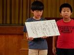 児童代表の言葉は4年生です。1学期のむかばきやサマーキャンプをとおして、「一人でできないこともみんなで力を合わせればできる、できた時は一人でできた時よりもずっとうれしいということを学びました。」と、堂々と発表することができました。