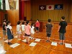 校歌斉唱や「夏休みに向けて」の合同学活の様子です。