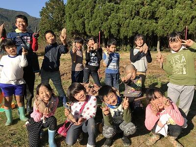 11月6日(火)は芋掘りをしました。固くて粘りけの強い土をかき分けて、芋を傷つけないように気をつけながらたくさん掘りました。畑を貸してくださった地域の方に感謝しつつ、おいしく調理していただきたいと思います。