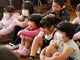 今回の表現集会は中学年でした。リコーダーを演奏したり、駄賃づけ唄を披露したりした後は、「じゅうごやさんのもちつき」の手遊びうたをみんなと一緒にしました。真剣な姿を見せてくれたり、笑顔で楽しむ姿を見せてくれたりと、メリハリのある3・4年生らしい楽しい表現集会でした。
