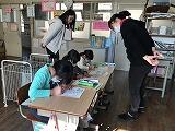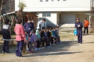 1月22日(火)は新入生体験入学の日。かわいらしい荒川保育所の年長さんが大きなランドセルを背負って、少し緊張した様子で登校してきました。案内係の3・4年生が校内の場所や役割をひとつひとつ優しく案内していました。