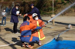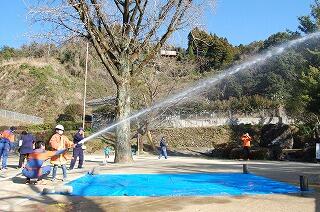 【放水体験をさせていただきました。ホースがとても重かったようです。】