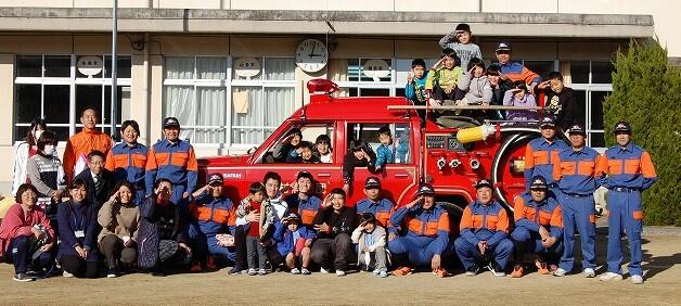 1月17日(木)は、火災の避難訓練を行い、今年も講師として、諸塚村消防団第4部12名の団員の方々、諸塚村役場の消防担当の方にお越しいただきました。