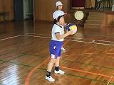 体育では「プレルボール」をしています。1チーム4人の2チームがネットをはさみ、自分のコート内でバウンドして3回目のバウンドパスで相手のコートに打ち返すゲームです。勝つためにはどうしたら良いか、チームで話合い、協力しながら体を動かしています。