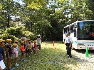 諸塚交通さんのご協力によって「バスマナー教室」を開くことができました。内輪差のことや運転席からの死角、バスから降りるときの飛び出し等、命にかかわる大切な学びができました。