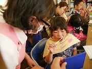 5月24日の参観日では、太田歯科医院の歯科衛生士さんにお越しいただき、歯のみがき方について教えていただきました。今年は、むし歯のある児童の数は減りましたが、歯の生え替わる時期の児童が多いため、歯のみがき方に注意が必要な児童が増えていました。歯科衛生士さんより、一人一人のみがき残しに応じた歯のみがき方について指導していただき、親子で歯みがきについて考える貴重な時間となりました。