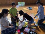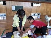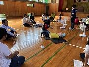 午後からは、日本赤十字社の方に講師としてお越しいただき、5・6年生、保護者の方々、職員で心肺蘇生法講習会を受けました。