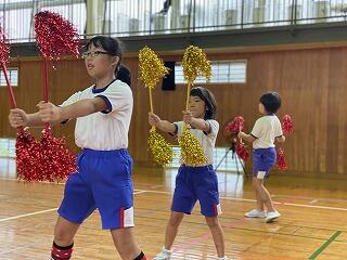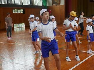 4時間目の合同体育では、運動会に向けて、保護者の方に「チョイガマカ」や「オクラホマミクサ-」を教えていただき、一緒に踊りました。