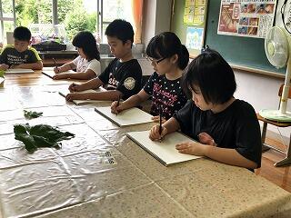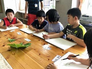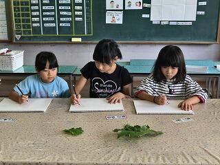 9月4日(水)、朝の時間にスケッチをしました。2階の窓まで元気にツルが伸びているヘチマとゴーヤの葉を描きました。似ているようで少し違うヘチマとゴーヤの葉の違いも発見することもできたようです。