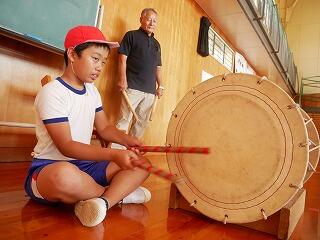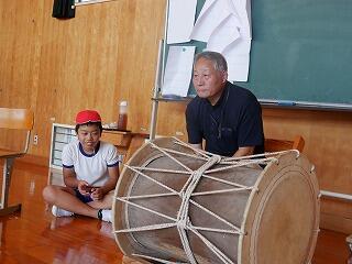 3校時には、地域の方が2度目の子ども神楽のご指導に来てくださり、舞い方や太鼓のリズムの確認をしました。