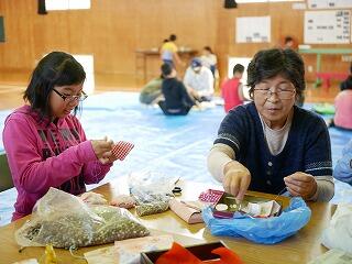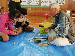 10月31日、寿会の方々とふれあいながら、竹とんぼや水でっぽう、おじゃみを作りました。裁縫も小刀で竹を削る作業も寿会の方々はすんなりとされていましたが、子どもたちにはとても難しかったようです。寿会の方々からコツを優しく教えてもらいながら完成させることができました。ふれあいを通して、改めて寿会の方々のすごさを実感する機会となりました。