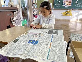 本校の元気印の2年生の2人。空き時間は「学校に役立つことをしよう」と各教室等にあるゴミ箱用の袋を新聞紙でたくさん作ってくれています。新聞紙を折ることやホッチキスで留めることもとても上手です。