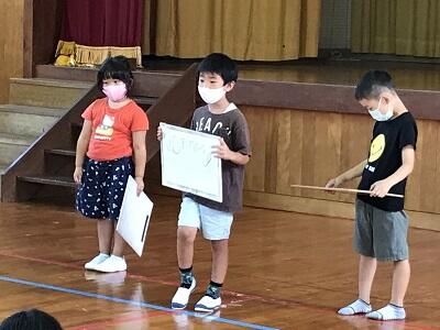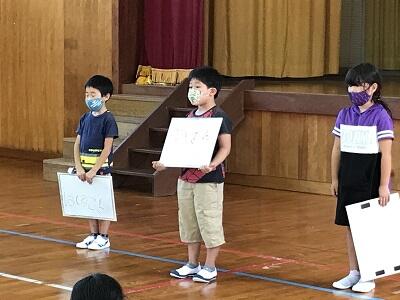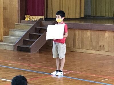 始業式では、児童代表作文発表や2学期頑張ることをみんなの前で発表できました。