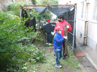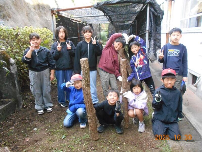 10月30日(木)に校舎裏にある椎茸の原木の入れかえ作業をしました。昨年までは駒打ち体験をしていましたが、伏せ込み期間と・閉校の次期を考えて今年は残念ながら駒打ち体験はしません。しかし、今回なば木を入れかえたことにより、収穫が期待できます。諸塚村の基幹産業の一つである椎茸栽培に触れることは、ふるさとを大事にする心を育むことに繋がるのではないかと思います。