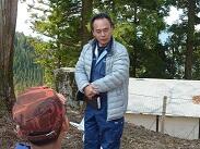 神楽・箕舞が終わると子どもたちは山のてっぺんにのぼって「お別れ会」をしました。一体何が行われるのか子どもたちに聞いてみると、「地元の林業会社の社長さんが毎年プレゼントをくれます」と話をしていました。まだかまだかと子どもたちがワクワクして待っていると、地元の林業会社の方が来てくださいました。