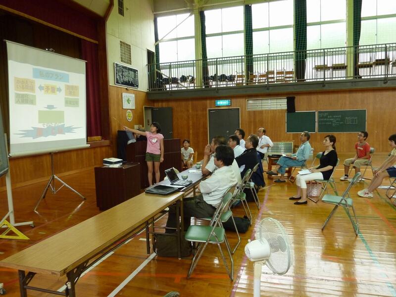 まずは「絆プロジェクト」をテーマにした発表です。「諸塚村/むらづくり基本コンセプト」を読み、「諸塚村にひとづくりの基盤があるのは、地縁、血縁などを含めて、そこに住む人々がお互い助けあい、支えあっているからです」という内容にこの児童は着目しました。そこで、施設に入所されているおじいちゃん・おばあちゃんと家族の絆づくりをしたいという思いができ、このようなテーマになりました。具体的には木でフォトフォルダーを作成し、それに家族の写真を入れて貰いたいと考えているようです。
