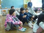 ごはんに黒米を混ぜると紫色になります。また、香ばしい香りもあり、とてもおいしいごはんです。すき焼きの中には野菜がいっぱい入っていて、大きな牛肉も入っていました。だいこんサラダは、「だいこんが漬け物みたいでおいしかった」と話す子どももいました。どれもとってもおいしくて、子どもたちはいつもよりも早く食べ終わって、生産者や実行委員の方との会話を楽しんでいました。「学校の給食は何十年ぶりに食べたかなぁ。おいしかった~」とお話ししてくださる生産者の方、給食を食べ終わった後はじゃんけんをして遊んでくださる実行委員の方など、積極的に子どもたちとふれあってくださいました。