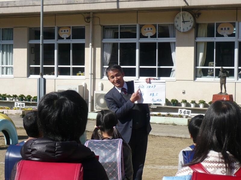 さらに、教頭先生は「千里の先にあるものは?」と問われました。「成功」、「達成感」、「喜び」、「目標」などが子どもたちの口から出てきました。教頭先生が考えられる千里の先にあるものは「あなたの幸せ」だそうです。教頭先生は子どもたちの幸せを願って、このお話をしてくださいました。