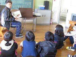 上学年は、物語(サトシンさんの「あるひ いつもの がくどうで。」)を読んでもらっていました。