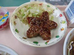 このようにうちの学校の調理員さんは、舌だけではなく、目でも給食を楽しませてくれます。