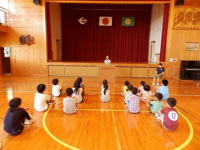 19名の子どもたち全員が元気に登校し、2校時に始業式を行いました。
