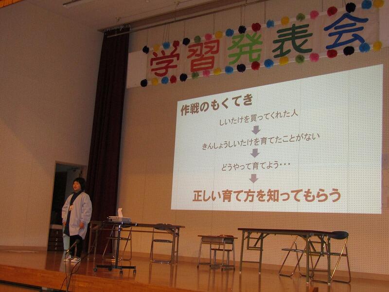 3・4年生は、総合的な学習で調べた「菌床椎茸」のことを劇風に発表しました。